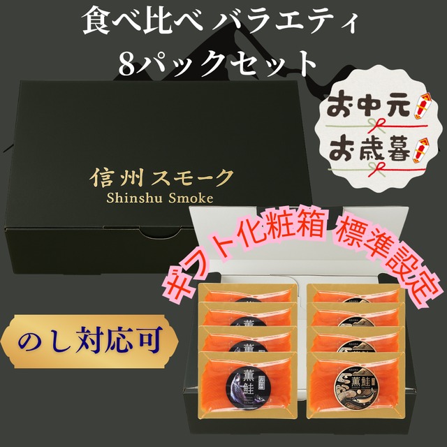 スモークサーモン ギフト|食べ比べ8パック(信州・浅間)ギフト箱入り・無添加