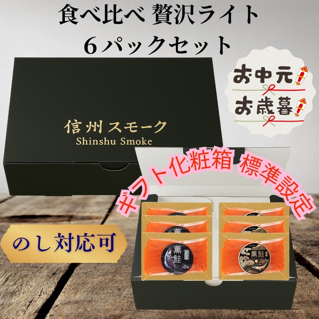 スモークサーモン ギフト|食べ比べ6パック(信州・浅間)ギフト箱入り・無添加