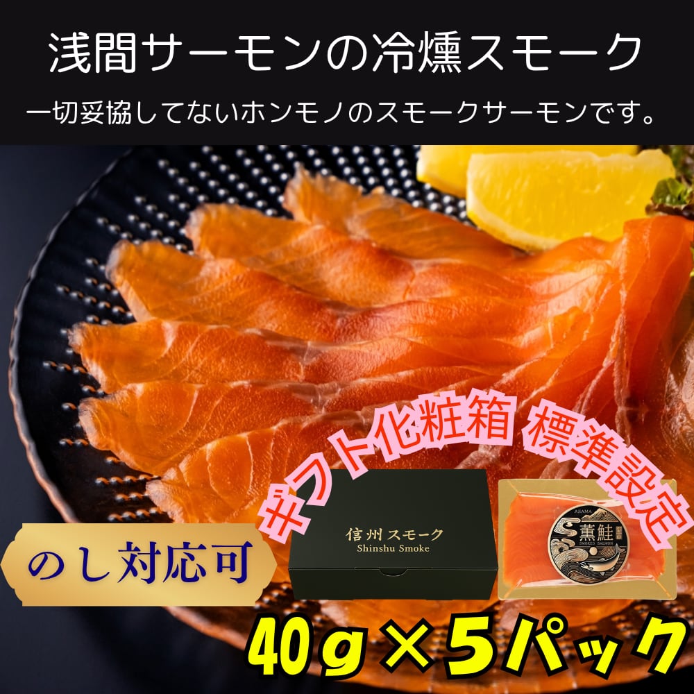 【ギフト箱入り】【冷燻製】浅間サーモンのスモークサーモン|浅間薫鮭 40g×5パック