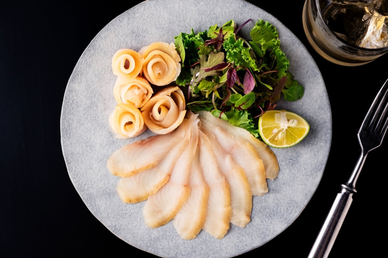 長野県産のブランド魚「信州大王イワナ」を、塩と砂糖のみで下味、桜チップの冷燻(無添加)で仕上げた白身のスモーク「信州大王薫」。