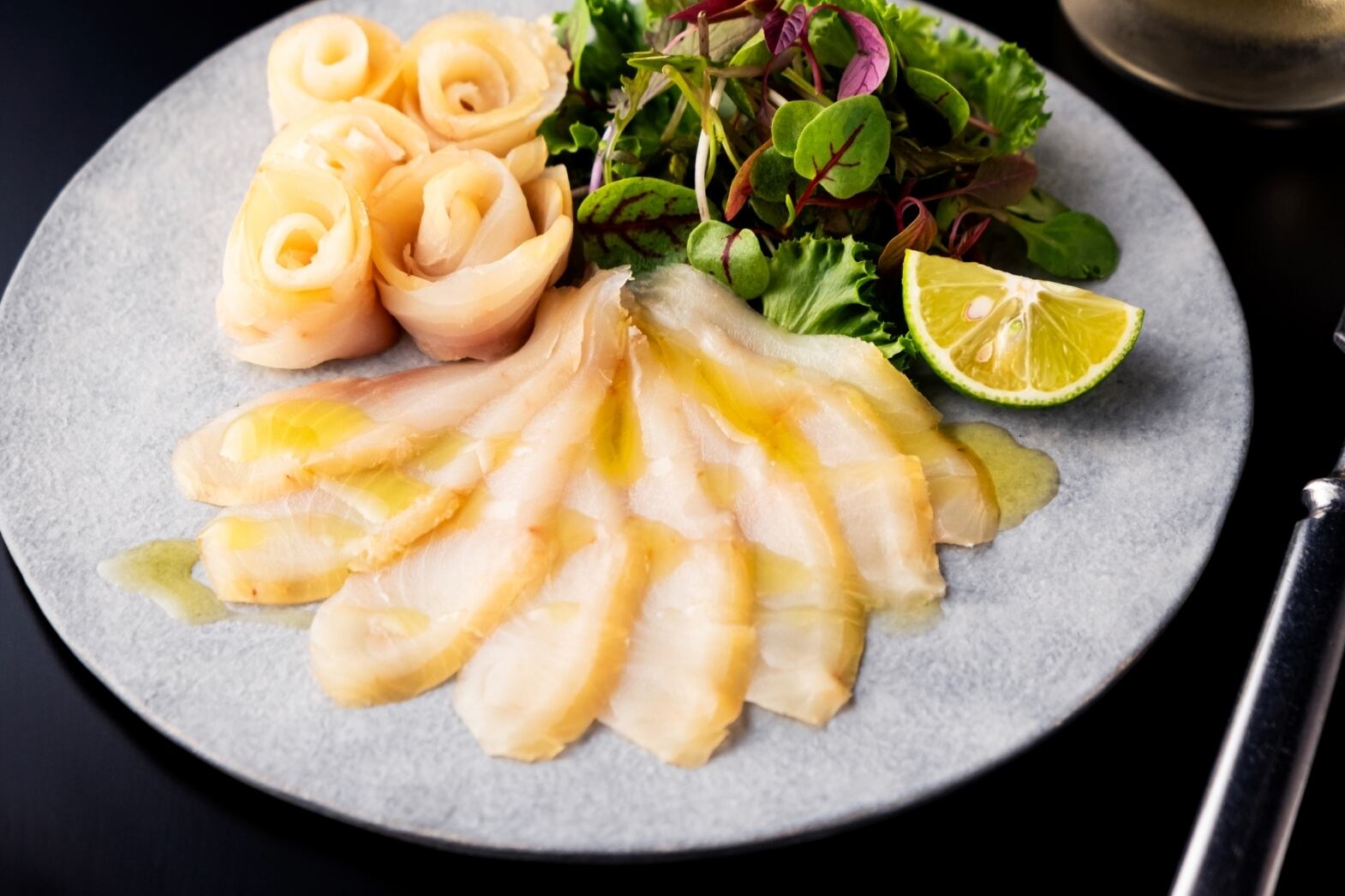 3) 前菜・和のひと品 バゲット/カナッペに上質オリーブオイルを少量 大根おろし+すだち、小茶漬け(白だし数滴)も好相性