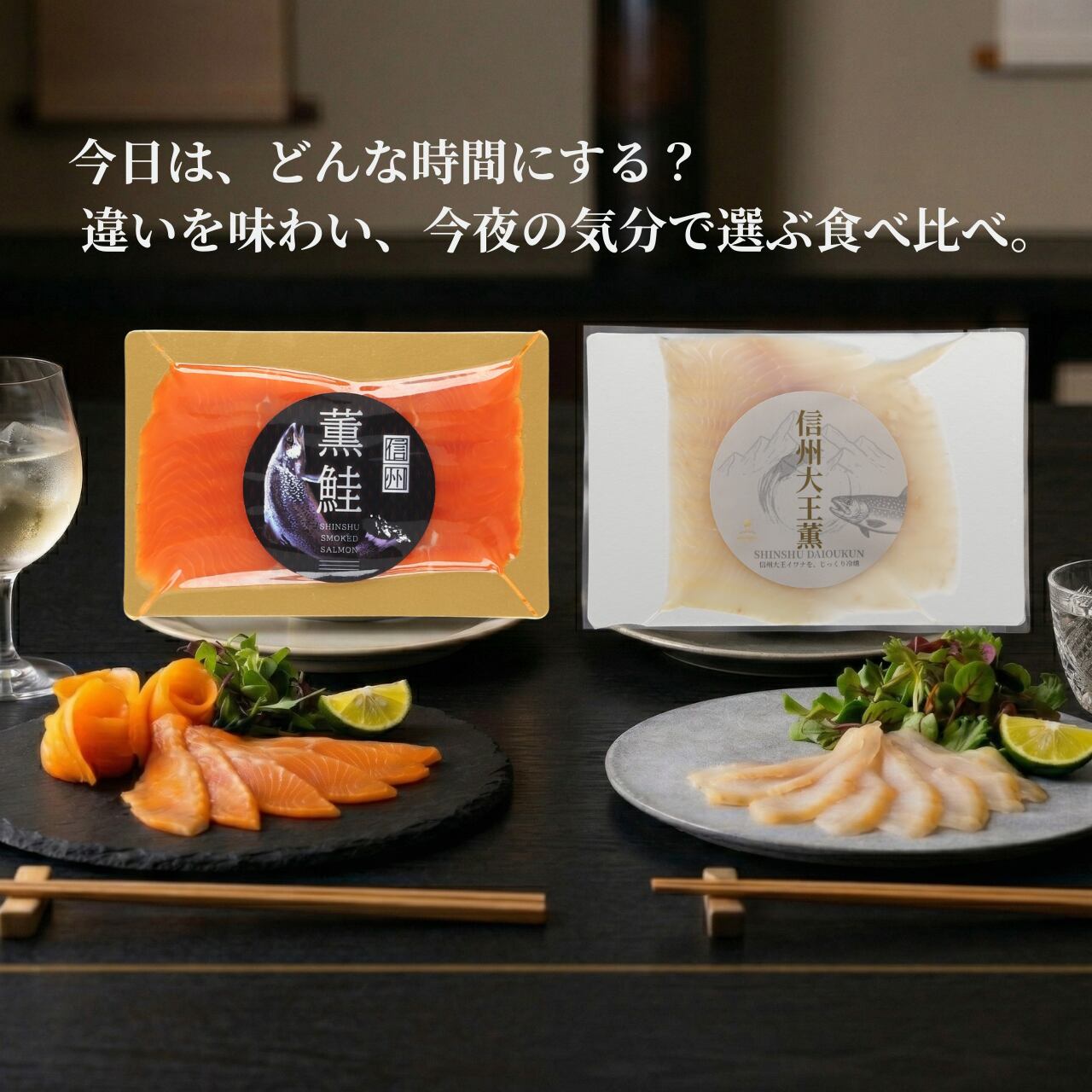 一方の信州大王薫は、白身魚ならではの繊細で上品な味わいと、冷燻製の深い香りが魅力。