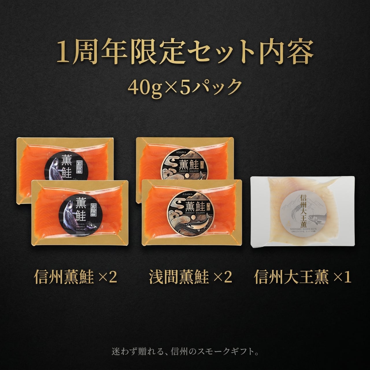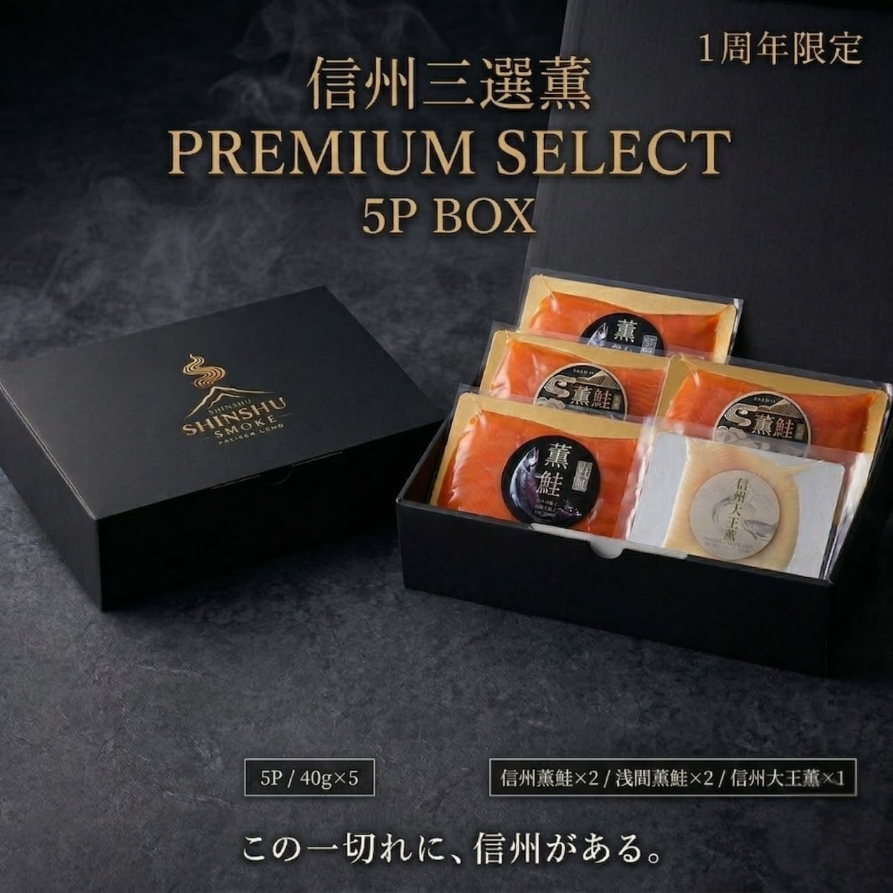 信州スモーク1周年を記念して、ブランドを代表する「信州三選薫」を5P仕様の限定BOXに仕立てました。